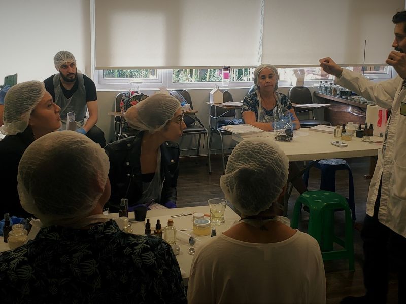 • Preparación de loción con activos botánicos para pieles sensibles.